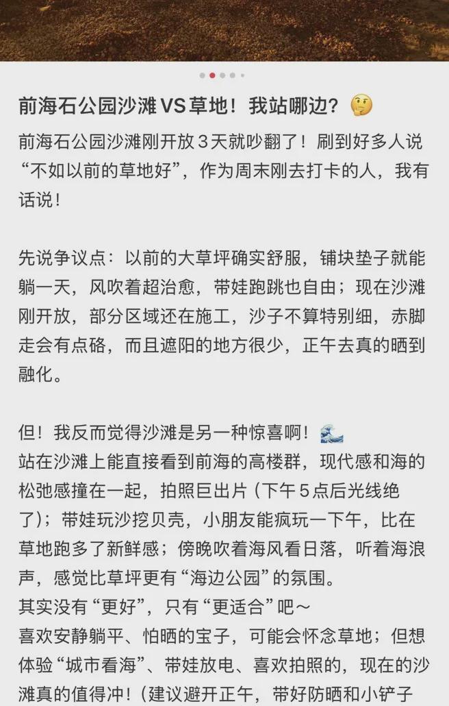 近日,前海石公园桂湾段滨海岸线海堤及景观提升工程基本完工,深圳首个都市沙滩——前海沙滩也正式开放,部分市民已“抢鲜”前往该公园体验游玩。然而,这片备受关注的沙滩完工后,部分市民却称“体验感欠佳”。