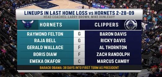 在比赛结束后,转播方晒出了两队交手纪录的数据:上一次黄蜂队在客场击败快船还要追溯到2009年2月28日,下方注脚则调侃道“彼时奥巴马刚刚上任美国总统38天”。自那之后,黄蜂队已经客场面对快船16连败。