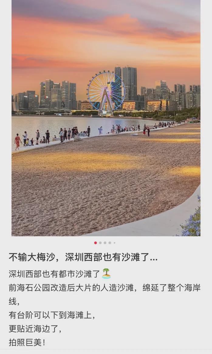 近日,前海石公园桂湾段滨海岸线海堤及景观提升工程基本完工,深圳首个都市沙滩——前海沙滩也正式开放,部分市民已“抢鲜”前往该公园体验游玩。然而,这片备受关注的沙滩完工后,部分市民却称“体验感欠佳”。